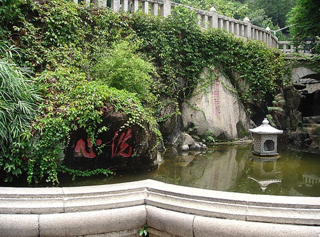 南普陀寺的殿堂、樓院、門廊等石柱上,均鐫有出自文人高士撰書的楹聯(lián)。聯(lián)文中或托景物以抒懷,或寓撣機以寄悟,巧對佳聯(lián),各得其妙。還有許多古今詩人墨客留下的詩詞吟詠,其中有不少佳作,不僅格調(diào)清新,意境高越,還賦有時事記實的內(nèi)涵,令后人在吟味中獲得史疑佐證的契機。如宋人尉滕翔在詠無盡巖的詩句中,如實地反映了當(dāng)時無盡巖下還是波浪翻滾的大海,以及山中野寺荒寂的情景,反證了所謂鷺島全面開發(fā)前的中唐,即有人獻地五十余畝以建昔照寺殿堂的誤傳。又如晚明與重興普照寺詩僧黨光和尚同時的鷺島名士池顯方,在題《五老山》詩的起句中,即以“十年古剎幾殘灰,重見天花散講臺” ,點出覺光大師重建普照寺的史實。