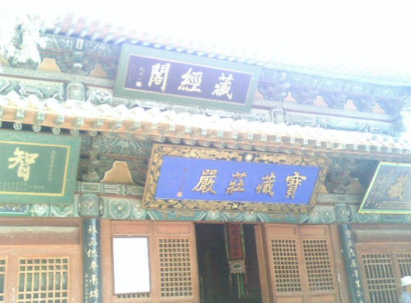 三圣殿:三圣殿本應(yīng)塑西方三圣,但塑為華嚴(yán)三圣,中間是釋迦牟尼佛,東側(cè)文殊師利菩薩,西側(cè)是大行普賢菩薩。壁后背南面北而坐的是觀音菩薩,他兩旁是善財(cái)童子和龍女。觀音菩薩大慈大悲,在各個(gè)不同的地區(qū)和環(huán)境施行教化,普度眾生,他的道場(chǎng)是浙江普陀山。