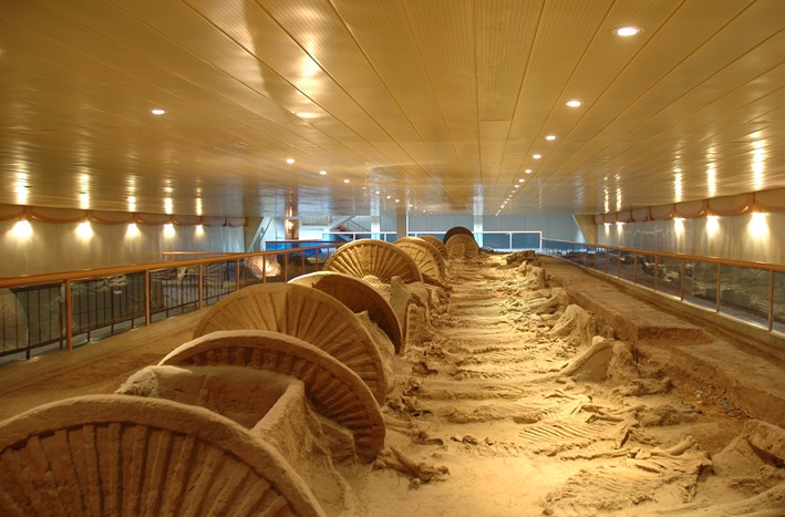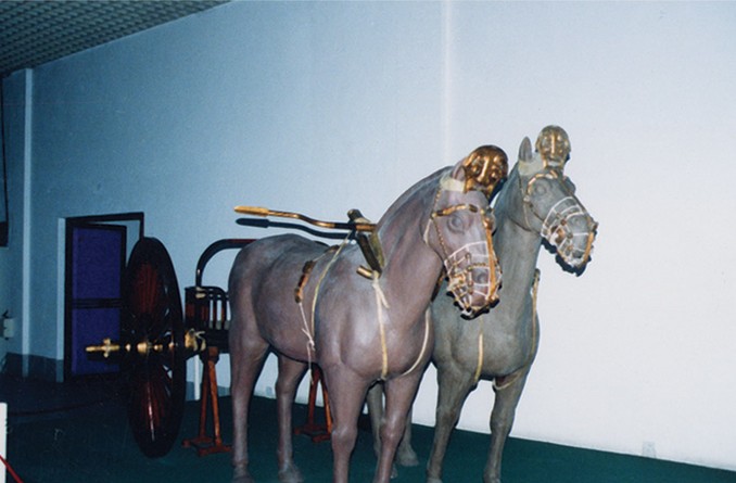 春秋殉馬坑殉戰(zhàn)車10輛,馬32匹,規(guī)模之大,配套之齊全,馬飾之精美,為當(dāng)代全國之冠,列全國十大考古發(fā)現(xiàn)之一。古車陳列展廳陳列后李車馬坑出土的各類車和臨淄地區(qū)出土的古代車的復(fù)原車,直至全國出土的各類古代車復(fù)原車。集中國古車研究成果之大成,薈華夏歷代車乘珍品之精粹,充分展示了我國車乘的悠久歷史和造車技術(shù)在世界車輛發(fā)展史上的領(lǐng)先地位.