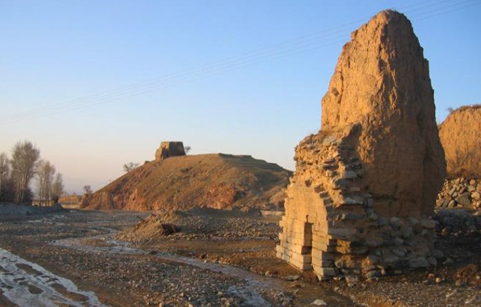 梅力更溝烽燧 共 2 處,梅力更溝位于包頭市西郊哈業(yè)胡同鄉(xiāng)鄉(xiāng)政府西北約 8 公里處,一處位于梅力更溝東岸,緊貼趙長(zhǎng)城,另一處位于梅力更溝西岸梅力更溝南障城北墻中部外側(cè),二烽燧均呈圓錐狀,底徑約 20 米。