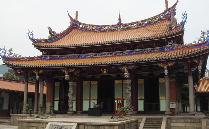 孔廟位于大同區(qū)大龍街,創(chuàng)建于清光緒元年(公元一八七五年)臺灣北部設(shè)置臺北府,當(dāng)府城于光緒五年(公元一八七九年)動工,隨即在城內(nèi)南門內(nèi)建造文武廟,兩座廟皆朝南,文廟在左,武廟在右,即是臺北府的孔廟。