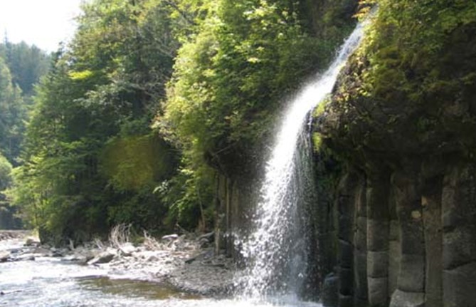 吊水壺瀑布景區(qū)距離三角龍灣15分鐘的車程,與金龍頂子山相依為伴。吊水壺瀑布是火山爆發(fā)后,河床受張力斷迭形成的瀑布,寬約10米,落差7米。更別致的是另有一處水流好似噴泉,自崖中間凌空噴下,象茶壺中的水從壺嘴中倒出來一樣,故當(dāng)?shù)厝朔Q其為“吊水壺”。吊水壺瀑布景致壯觀秀麗,流水清澈見底,冬天水不封冰,夏日冰涼刺骨。炎熱的盛夏時節(jié)前去,一定會看到水珠飛濺、霧氣蒙蒙的景象,一陣陣涼氣襲來,沁人心脾,可謂避暑度夏的最好去處了。