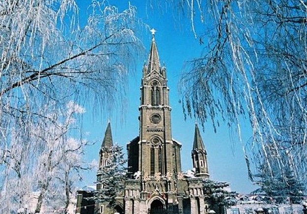 天主教堂位于松花江路三號(hào),吉林大橋北端附近,南臨松花江。