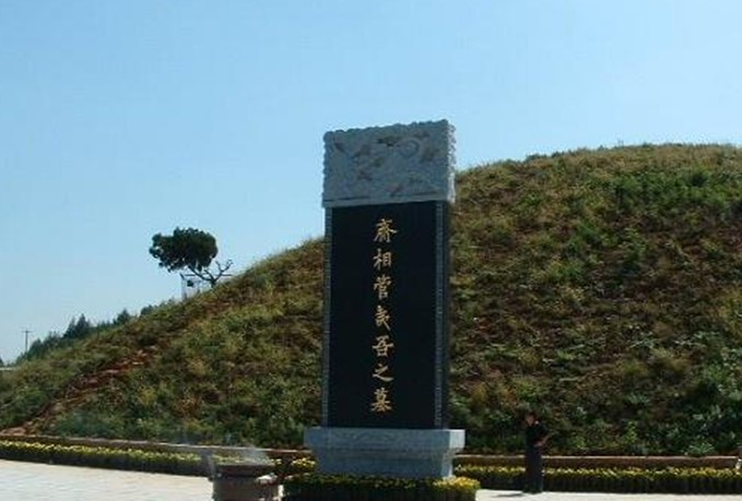 在臨淄城南牛山北麓,墓高14米,東西34米,南北近14米。后人登臨牛山,總免不了在管仲墓前留連一番,毛維騶曾慨嘆:“幸脫當(dāng)年車檻災(zāi),一匡霸業(yè)為齊開??蓱z三尺牛山土,千古長埋天下才”。舊時(shí)墓前曾立一石碑刻有此詩,今已無存。