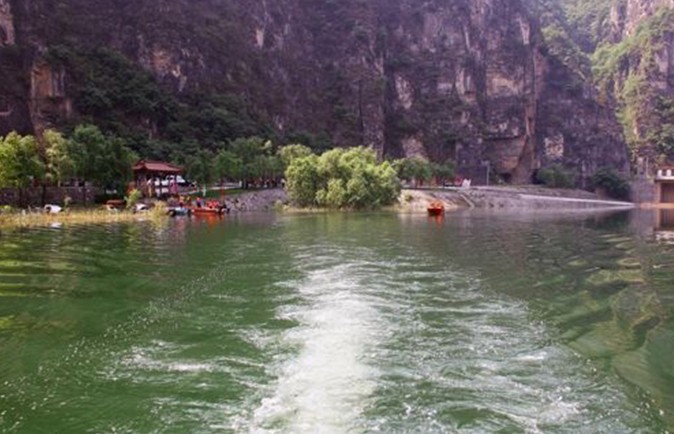 泉河頭風(fēng)景區(qū),主要有上龍灣、 泉河頭風(fēng)景區(qū),主要有上龍灣、下龍灣泉群和青龍山古建筑群組成。“半畝方塘碧澗深,高山流水澈清音”。乍離水源緊缺的博山城,見到這里水氣飛霧,泉瀑涌流,游人格外興奮。泉河一帶,寬闊的水面上輝映著青龍山的倒映,水清見底,魚游淺灘,鵝鴨嬉戲,令人耳目一新。兩處泉源——上龍灣和下龍灣,被疏浚整修成十幾米見方的深水池,四周石柱回護(hù),池深水綠,泉眼密布,噴玉吐珠,常年不竭,且水溫常年保持在15℃左右,適宜養(yǎng)殖熱帶魚類。市、區(qū)水利部門在此投資建成數(shù)畝魚池,飼養(yǎng)從國外引進(jìn)的虹鱒魚。河畔的銀灰色建筑是新近落成的虹鱒魚酒樓。人們在游山玩水之余,至此品嘗魚鮮,別有一番情趣。從下龍灣沿山路盤旋而上,可見一組古建筑鑲嵌在懸崖峭壁之間,掩映在綠樹繁花之中。頭一座是舊時人們祈禱風(fēng)調(diào)雨順、五谷豐登的龍王廟。再拾級東攀,至山門——一座磚砌單檐三門牌樓,高寬約6米,凌空矗立,上書“清音萬古”。進(jìn)牌樓,迎面是幢規(guī)模較大的殿宇——三宮殿。據(jù)殿前石壁透龍碑記載,此殿系明萬歷十二年修建,距今已400余年。這“透龍碑”浮雕石龍,光滑如鏡。當(dāng)?shù)赜惺酌裰{:“青龍山前一條河,既有鴛鴦又有鵝,抬頭望見透龍碑,一眼看到太陽窩”。傳說人摸石碑可逢兇化吉。 晚霞夕映,碑端能照見高聳的無影山。繞過三宮殿,穿過石砌洞道,來到這組古建筑的中心——涼亭。該亭四角八柱,半空飛檐,雄踞山腰。石柱上刻有“炎天無暑氣,清夜有泉聲”的詩聯(lián)。登亭遠(yuǎn)眺,版權(quán)所有山東聊城聊之旅國際旅行社有限公司,轉(zhuǎn)載必究!田園阡陌,歷歷在目,淄水長流,盡收眼底。從涼亭上攀,則是一依山傍崖的雙層閣樓,上層是白衣閣,底層過一拱門便是青龍洞,這洞外闊內(nèi)窄,深邃曲折,怪石嶙峋。白衣閣東側(cè),也是一雙層建筑,圓柱飛檐,上為觀音殿,下為道房,其間亦有洞口通后山。這組古建筑依勢構(gòu)造,錯落有致,布局精巧。這些景觀和建筑是泉河附近群眾集資修復(fù)的,基本保持了明清建筑的風(fēng)格。