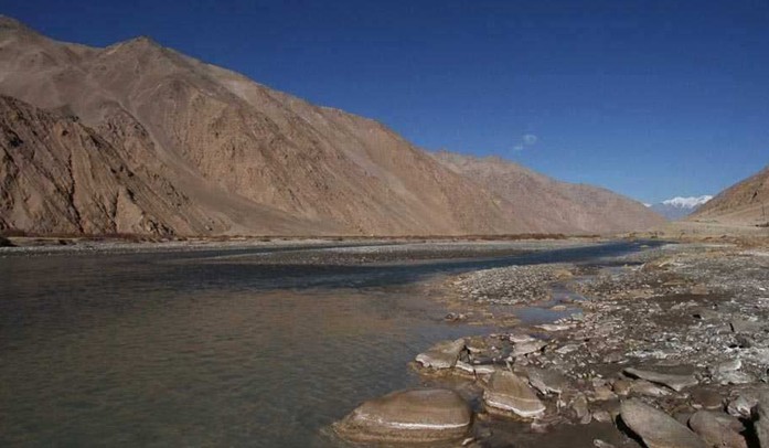 墨玉河亦稱喀拉喀什河,因出產(chǎn)墨玉而得名,生產(chǎn)的墨玉是雕琢玉器的上等玉米。墨玉河發(fā)源于喀喇昆侖山,全長808公里,墨玉河自西南向北流經(jīng)墨玉綠洲,在闊什塔什與白玉河匯流成和田河。墨玉河年徑流量21.9億立米,灌區(qū)有6.7萬公頃耕地,53萬人受益。墨玉河與白玉河都是和田最大的河流。為更好地利用水資源,80年代分別在墨玉河和白玉汀上游修建了渠首。