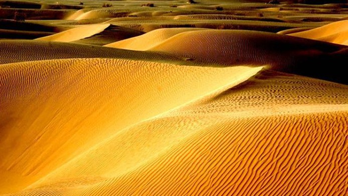 科學(xué)家最新一項(xiàng)研究成果表明,我國面積最大的沙漠——新疆的塔克拉瑪干沙漠,可能早在450萬年前就已經(jīng)是一片浩瀚無邊的“死亡之海”。 科學(xué)家對塔里木盆地南部邊緣的沉積地層進(jìn)行了深入分析,發(fā)現(xiàn)其中夾有大量風(fēng)力作用形成的“風(fēng)成黃土”,年齡至少有450萬年,而這些“風(fēng)成黃土”的物源區(qū)(即來源地),就是現(xiàn)在的塔克拉瑪干大沙漠。 位于塔里木盆地中央的塔克拉瑪干大沙漠,面積有33.76萬平方公里,相當(dāng)于新西蘭的國土面積。這里長年黃沙堆積,狂風(fēng)呼嘯,渺無人煙,一座座金字塔形的沙丘屹立在沙漠上。
