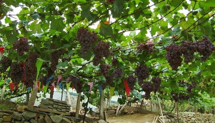 風景秀麗的葡萄溝,以盛產(chǎn)優(yōu)質(zhì)葡萄而聞名中外。1994年溝里種植葡萄315.6 公頃,生產(chǎn)鮮葡萄8601噸。這里主要種植無核白葡萄,還有馬奶子、紅葡萄、喀什哈爾、日加干、瑣瑣等 13個品種。其果實呈球形、卵形、橢園形等,有的葡萄晶瑩如珍珠,有的鮮艷似瑪瑙,而有的綠若翡翠。版權(quán)所有山東聊城聊之旅國際旅行社有限公司,轉(zhuǎn)載必究!那五光十色、翠綠欲滴的鮮葡萄,令人垂涎不止。尤其是這里生產(chǎn)的無核白葡萄、皮薄、肉嫩、多汁、味美,營養(yǎng)豐富,素有“珍珠”美稱,其含糖量高達20-24%,超過美國加利福尼亞州的葡萄,居世界之冠。用無核白鮮葡萄晾制的葡萄干,含糖量高達60%,被人們視為葡萄中的珍品。