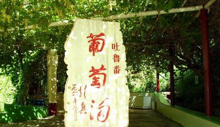 吐魯番的夏天可是出了名的熱,8月基本上每天的氣溫都在42℃以上,火焰山的地面溫度可以達到80至90℃,故有“沙窩里煮雞蛋之稱”。但在葡萄溝溪流兩側(cè),葡萄架遍布,葡萄藤蔓層層疊疊,綠意蔥蔥。四周是茂密的白楊林,花草果樹點綴其間,農(nóng)家村舍錯落有致地排列在緩坡上。葡萄溝,是火洲的“桃花源”。溝里四處都有令人向往的地方。一是葡萄溝接待站。這是為中外賓客開辟的游覽場所,依山旁水,安靜、幽雅,景物天成,數(shù)條葡萄長廊深邃、幽靜,有的游客信步葡萄架下,仰首盡情觀嘗珍珠般的葡萄,有的游人坐在葡萄架下品嘗鮮葡萄。長廊盡頭碑石上葡萄溝三個鮮紅大字,格外引人注目,游人爭先恐后在此照相留念。園內(nèi)有民族風味的食堂,有賣工藝品的蒙古包,還有劃船游玩的地方。二是葡萄山莊。這是葡萄溝里設備齊全、級別較高的度假村。這里有高檔次床位120個,有供120人就餐的飯廳,還有卡拉 ok廳、游泳池等。三是吐魯番葡萄展覽館。四是吐魯番維吾爾族民居民俗館。五是葡萄鄉(xiāng)的度假村。