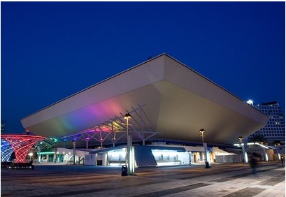 表演場-面積:41米x41米,最多可設(shè)位:12,500 ,。地面:混凝土,地面負(fù)荷:每平方米1,800千克,樓高:23米,設(shè)備:各式組合式表演臺,高懸中央的電視放映系統(tǒng),各式新型的舞臺及技術(shù)設(shè)備 。