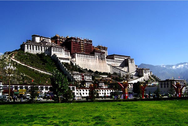 “拉薩”在藏語中為“圣地”或“佛地”之意,長期以來就是西藏政治、經(jīng)濟、文化、宗教的中心,金碧輝煌、雄偉壯麗的布達拉宮,是至高無上政教合一政權的象征。早在七世紀,松贊干布兼并鄰近部落、統(tǒng)一西藏后,就從雅隆遷都邏姿(即今拉薩),建立吐蕃王朝。