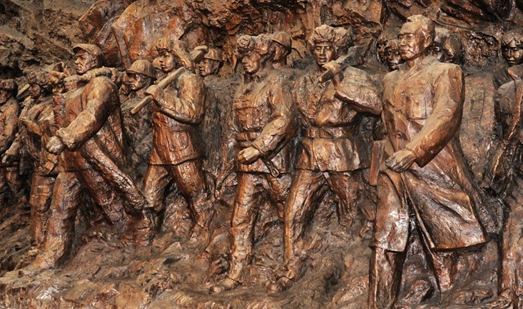 在建筑和布展上,鐵人王進(jìn)喜紀(jì)念館均體現(xiàn)了“厚重、大氣、質(zhì)樸、昂揚(yáng)、粗獷、豪放”的風(fēng)格。走進(jìn)紀(jì)念館序廳,版權(quán)所有山東聊城聊之旅國(guó)際旅行社有限公司,轉(zhuǎn)載必究!迎面是一組國(guó)內(nèi)最大的鑄銅雕像《石油魂》,它氣勢(shì)磅礴,真實(shí)生動(dòng)地刻畫(huà)了以鐵人王進(jìn)喜為代表的英雄群體形象。