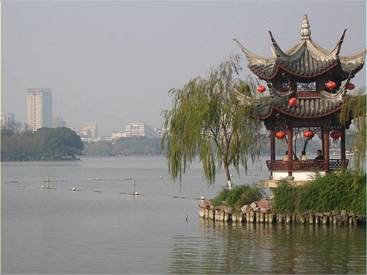 南湖現(xiàn)有面積600多畝,湖中有兩個(gè)人工小島。一是湖心島,面積不足18畝,上有煙雨樓等古園林建筑群,亭臺(tái)閣榭,假山回廊,疏密相間,錯(cuò)落有致,如同一顆璀璨的明珠鑲嵌在南湖之中;另一小島是稱為小煙雨樓的倉(cāng)圣祠,位于南湖的東北隅。