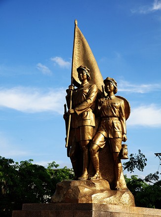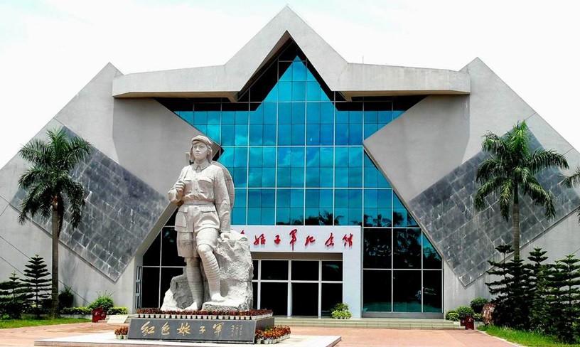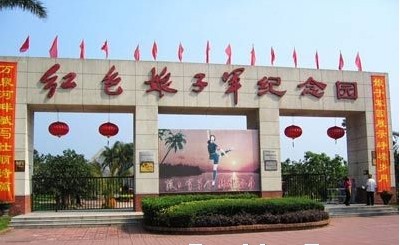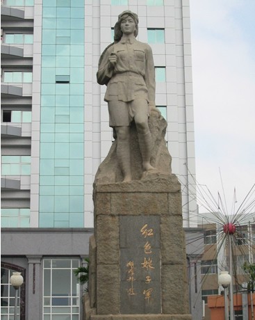 紅色娘子軍紀(jì)念雕像將紅軍女戰(zhàn)士腳穿草鞋、肩背竹笠、風(fēng)塵仆仆的一代巾幗英雄的氣概充分展現(xiàn)。雕像底座正面有胡耀邦金字題詞:“紅色娘子軍”。底座背面刻有如下文字:“紅色娘子軍即中國(guó)工農(nóng)紅軍第二獨(dú)立師女子軍特務(wù)連?!?1931年5月1日創(chuàng)建于樂(lè)會(huì)縣第四區(qū)革命根據(jù)地。