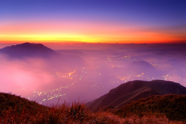 抵達(dá)大屯主峰頂,則是一片視野遼闊的景象。天氣晴朗時,往西可清晰地看到大屯南峰、大屯西峰、面天山三峰并置;還有伴其右、平版權(quán)所有聊城聊之旅旅行社有限公司,轉(zhuǎn)載必究!緩的地形中凸起的二子山;往北可看到烘爐山、菜公坑山和小觀音山等系列山嶺;東邊的七星山以圓錐狀的坐姿穩(wěn)定地屹立著;南方的山隨山勢漸緩而迎向廣闊的大臺北盆地;遠(yuǎn)眺綠色群山環(huán)繞的大臺北盆地,就像大冠鷲在高空上俯視臺北景觀一樣,一定令你難忘!