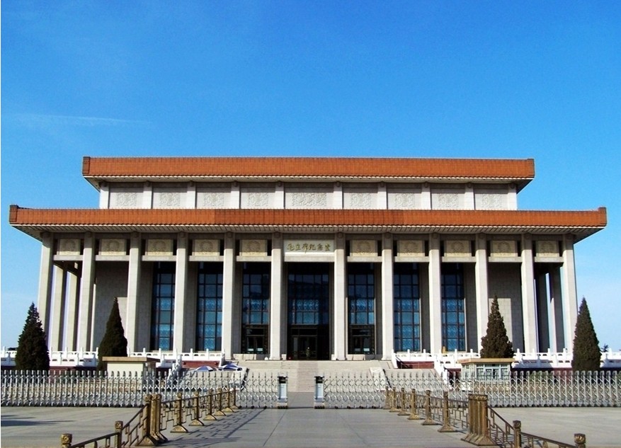花崗巖砌成,基座高4米,座上矗立著17.5米高的44根花崗巖廊柱,承托著熠熠生輝的金黃琉璃重檐屋頂。在這座舉世矚目的輝宏殿堂里,安放著中華人民共和國的締造者毛澤東主席的遺體,每天前往瞻仰的中外賓客絡(luò)繹不絕。