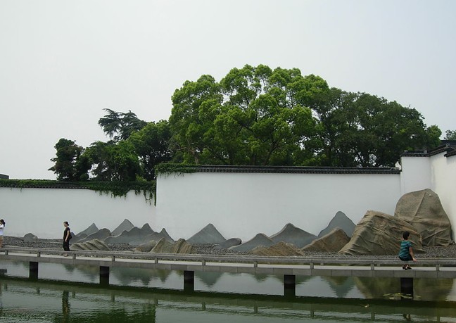 據(jù)說,位于中央大廳北部的主庭院的設(shè)置是最讓貝聿銘煞費苦心的。主庭院東、南、西三面由新館建筑相圍,北面與拙政園相鄰,版權(quán)所有山東聊城聊之旅國際旅行社有限公司,轉(zhuǎn)載必究!大約占新館面積的1/5空間。這是一座在古典園林元素基礎(chǔ)上精心打造出的創(chuàng)意山水園,由鋪滿鵝卵石的池塘、片石假山、直曲小橋、八角涼亭、竹林等組成,既不同于蘇州傳統(tǒng)園林,又不脫離中國人文氣息和神韻。山水園隔北墻直接銜接拙政園之補園,水景始于北墻西北角,仿佛由拙政園西引水而出;北墻之下為獨創(chuàng)的片石假山。當問及為何不采用傳統(tǒng)的太湖石時,貝聿銘曾說過,傳統(tǒng)假山藝術(shù)已無法超過。一輩子創(chuàng)新的大師,不愿步前人的后塵。這種“以壁為紙,以石為繪” ,別具一格的山水景觀,呈現(xiàn)出清晰的輪廓和剪影效果。使人看起來仿佛與旁邊的拙政園相連,新舊園景筆斷意連,巧妙地融為了一體?!∵@種在城市機理上的嵌合,還表現(xiàn)在東北街河北側(cè)1~2層商業(yè)建筑的設(shè)計,新館入口廣場和東北街河的貫通;親仁堂和張氏義莊整體移建后作為吳門畫派博物館與民族博物館區(qū)相融合,保留忠王府西側(cè)原張宅“小姐樓”(位于補園南、行政辦公區(qū)北端)作為飯店和茶樓用等;新址內(nèi)惟一值得保留的挺拔玉蘭樹也經(jīng)貝先生設(shè)計,恰到好處地置于前院東南角。