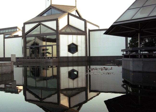 館建筑與創(chuàng)新的園藝是互相依托的,貝聿銘設(shè)計了一個主庭院和若干小內(nèi)庭院,布局精巧。其中,最為獨到的是中軸線上的北部庭院,不僅使游客透過大堂玻璃可一睹江南水景特色,而且庭院隔北墻直接銜接拙政園之補園,新舊園景融為一體。
