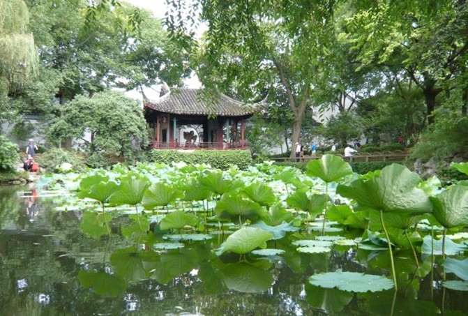 東園景色優(yōu)美,綠樹(shù)成蔭,是城市中的天然氧吧,蘇州市民休閑游覽的好去處。
