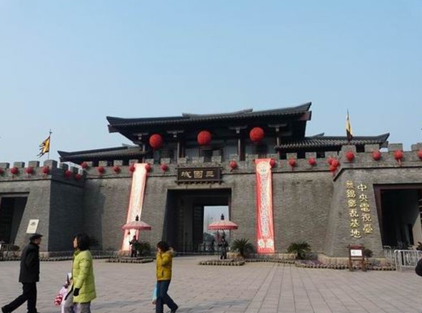 三國(guó)城坐落在蔥蘢蒼翠的軍嶂山麓、風(fēng)景秀麗的太湖之濱,是中央電視臺(tái)為拍攝八十四集電視連續(xù)劇《三國(guó)演義》而興建的大型影視文化景區(qū),“劉備招親”、“火燒赤壁”、“橫槊賦詩(shī)”、“草船借箭”、“借東風(fēng)”、“諸葛吊孝”、“舌戰(zhàn)群儒”等十多集的重場(chǎng)戲均在此拍攝。它占地35公頃,是中視股份繼唐城景區(qū)之后推出的又一座集影視拍攝、旅游功能于一體的影視城。