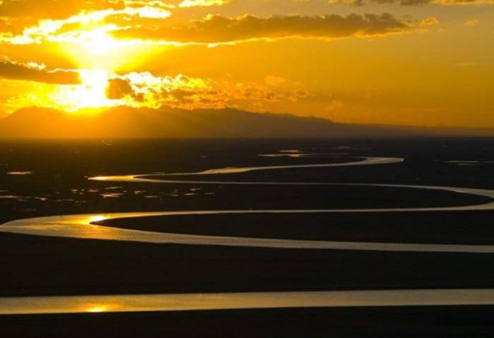 黃河流入后套平原,河面寬達(dá)三公里以上,水勢(shì)十分緩慢,河床上滿(mǎn)布沙洲、岔流,還有許多旋流,俗稱(chēng)“破河”。黃河河水達(dá)洪水位時(shí),形成一片汪洋,不分干岔。這一段黃河的河道,極不穩(wěn)定,常向南北遷移,因此造成許多牛軛湖,俗稱(chēng)“死河筒”。后套平原由耕地、草原和荒灘相間組成,渠道和林帶縱橫交織,形成黃河沿岸一個(gè)較為完備的排灌區(qū)。