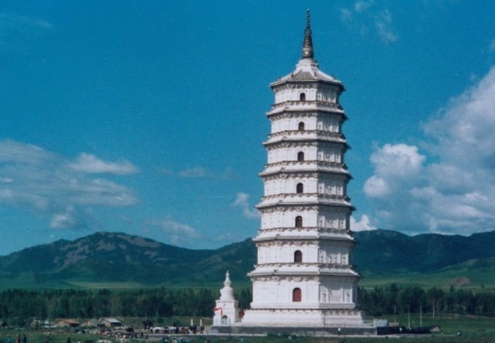 遼釋迦佛舍利塔,俗稱遼慶州白塔,當(dāng)?shù)孛晒抛迥撩駛兎Q“金金察罕索布爾嘎”,位于內(nèi)蒙古自治區(qū)巴林右旗索博日嘎蘇木駐地東北查干沐淪河的沖積平原上,是遼代鼎盛時期的重要州城———慶州城西北部,為第三批國家重點文物保護單位。