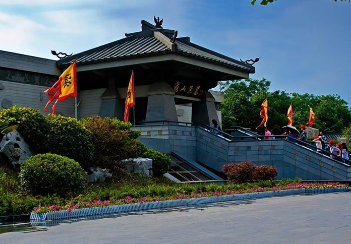 小龜山漢墓(全國重點文物保護單位)位于江蘇徐州市龜山西麓,為西漢第六代楚王襄王劉注(即位于公元前128年--前116年)的夫妻合葬墓。該墓為兩座并列相通的夫妻合葬墓,漢墓分為南北兩個甬道,長度分別為56米。二甬道長度差僅為11.90厘米,二甬道之間的距離19米,共有15個墓室,墓道和墓室總面積達到700多平方米,容積達2600多立方米。