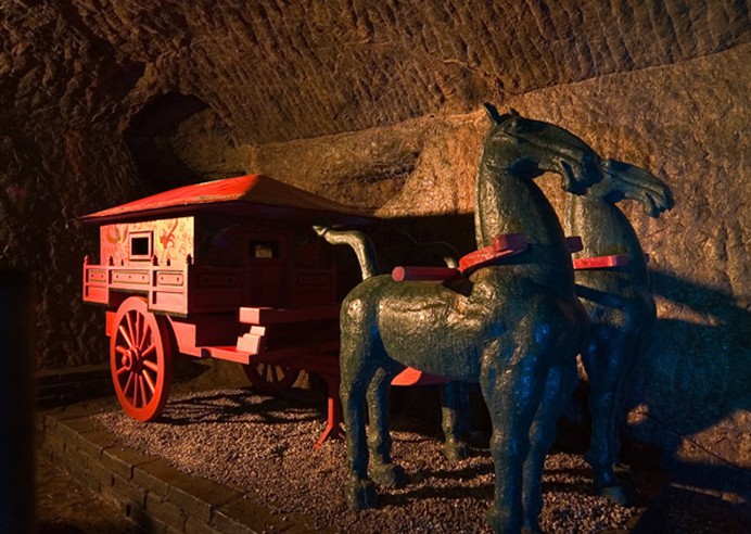 在劉注棺室周圍,分布著廁所、廚房、馬廄等實用居所。中國文化發(fā)展到后來越來越抽象化,即便是王陵,也只是象征性地建上幾間大堂。也只有漢代,人們把死作為生的延續(xù),才會在墓室中有如此紛繁復(fù)雜的布置。在劉注的墓中參觀,好像在探望主人的家居,毫無北京帝王陵墓的陰森。