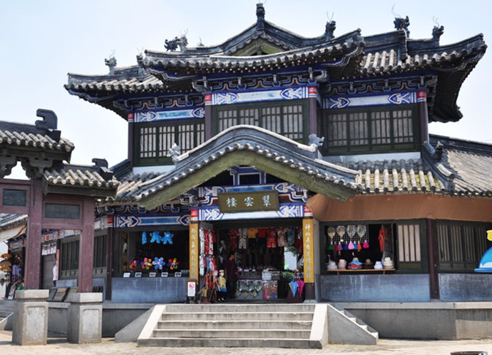走進(jìn)城門后下臺(tái)階后,進(jìn)入內(nèi)門,左邊有一處宅第,在〈〈水滸傳〉〉中武松為報(bào)兄仇,殺潘金蓮和西門慶被發(fā)配至孟州,多虧管營大人金眼彪施恩的厚待,義氣相投,結(jié)拜為兄弟,后又幫公義奪快活林,醉打蔣門神,這里就是當(dāng)初劇組拍攝施恩家外院的地方。右前方這一樓閣便是翠云樓,梁山好漢為救玉麒麟盧俊義,派鼓上蚤時(shí)遷在元宵節(jié)火燒翠云樓,眾好漢大鬧北京需,救出這個(gè)后來坐了梁山第二把交椅的盧俊義。這翠云樓其實(shí)是座酒樓,在當(dāng)時(shí)是河北第一大酒樓,全樓三檐滴水,有上百個(gè)閣子,規(guī)模宏大,是大名府的標(biāo)志性建筑。