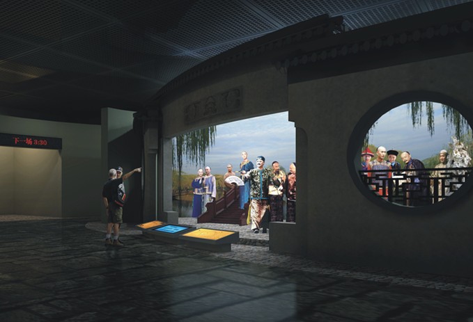 展廳平、立面長短弧線與直線的有機結(jié)合,象征揚州歷史連綿不斷,充滿無限生機和活力。展覽雖沒有刻意尋求造型元素和藝術(shù)符號來強化主題,但由形、色、光構(gòu)成的整個藝術(shù)空間,始終充滿著揚州文化特有的品質(zhì)和風格。