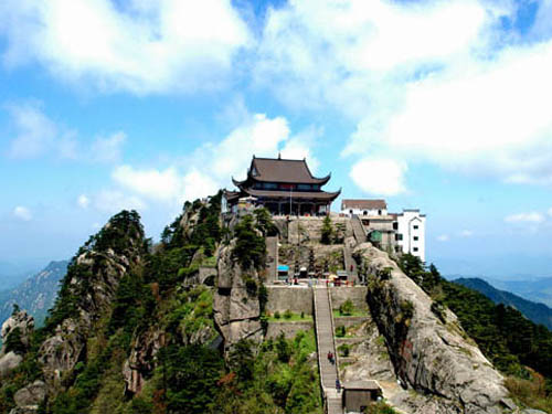坐落在安徽省,是地藏菩薩的道場,中國四大佛教名山之一,全國著名游覽避暑勝地。九華山北俯長江,南望黃山,東監(jiān)太平湖。 它以佛教文化習(xí)俗和奇麗的自然風(fēng)光享譽(yù)海內(nèi)外,尤其在東南亞華人世界更具盛名。 九華山素有九十九峰之稱,千米以上的高峰20多座,為首的是十王峰。天臺,天柱,獨(dú)秀,花臺,云外峰如臺似柱,聳入云霄;蓮花,芙蓉,翠屏,以微,翠蓋峰有芙蓉出水之姿“間聳航”,“雄叫天門”等茂石更是神工鬼斧。山間秀溪縈環(huán),銀瀑飛,景色迷人。優(yōu)美傳奇的舒印月和九子泉聲更富山水之情,給人以美的享受。古稱陵陽山、九子山,唐天寶年間改名九華山;因有九峰形似蓮花而得名