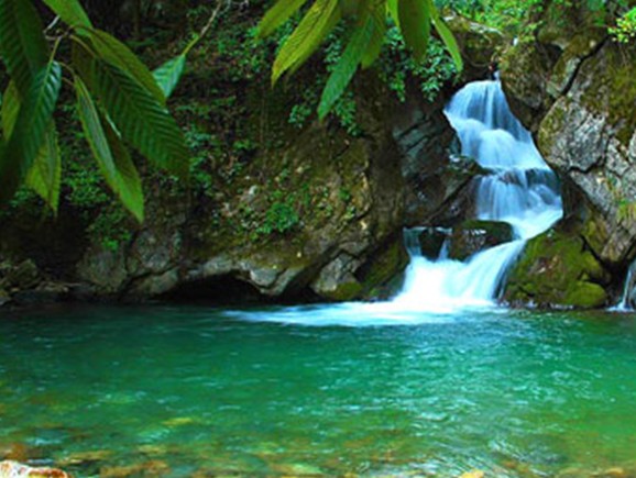 神龍溪為國家5A級風(fēng)景旅游區(qū)。神農(nóng)溪發(fā)源于神農(nóng)架的莽莽青山之中,溪水清冽明凈,兩岸山峰奇峻。自溪口上溯20公里,依次有龍昌洞峽、鸚鵡峽、錦竹峽,又稱“神農(nóng)三峽”。神農(nóng)溪漂流使用的是一種形似“豌豆角”的扁舟。跨上這種古味加土味的小船,在碧水清波上悠然漂流,會使你感到一種原始的野趣。如歐陽修的一首詞所描繪的;“無風(fēng)水面琉璃滑,不覺船移。微動漣漪。驚趣沙禽掠岸飛”。
