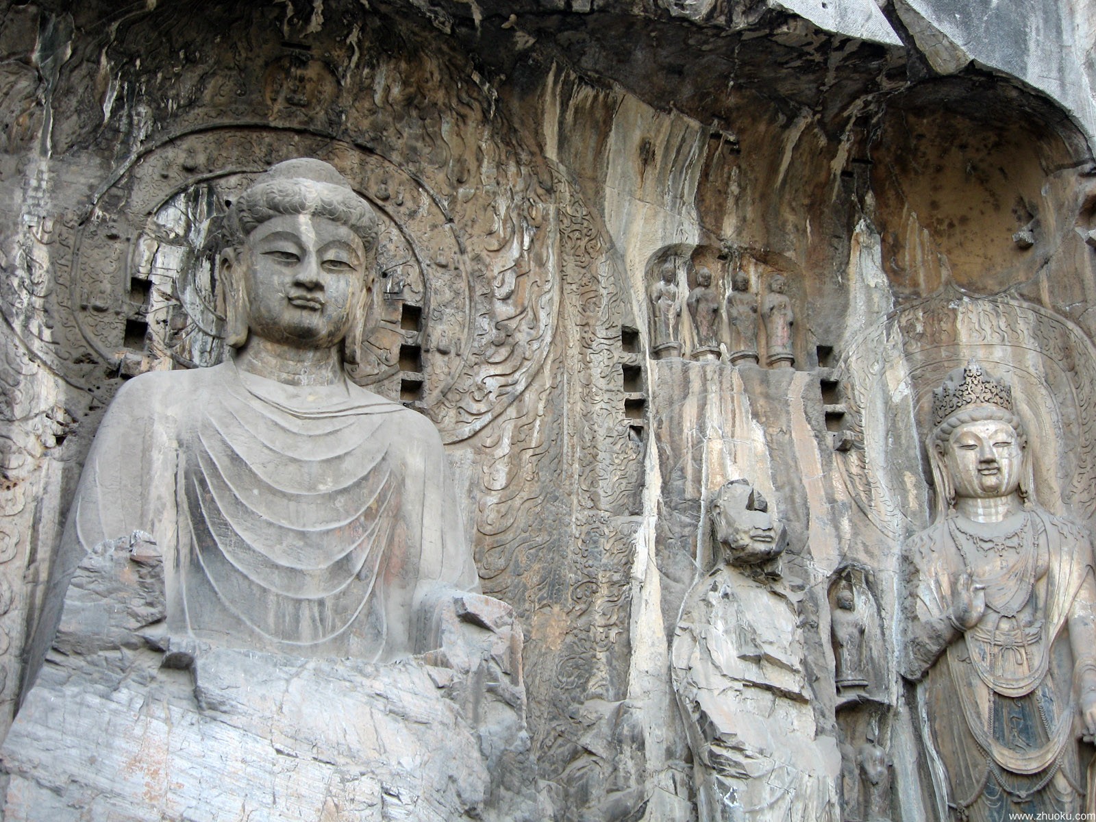 龍門石窟開(kāi)鑿于北魏孝文帝遷都洛陽(yáng)之際(公元493年),之后歷經(jīng)東魏、西魏、北齊、隋、唐、五代、宋等朝代400余年的營(yíng)造,其中北魏和唐代大規(guī)模營(yíng)建有140多年,從而形成了南北長(zhǎng)達(dá)1公里、具有2300余座窟龕、10萬(wàn)余尊造像、2800余塊碑刻題記的石窟遺存。在龍門的所有洞窟中,北魏洞窟約占30%,唐代占60%,其他朝代僅占10%。龍門石窟中最大的佛像盧舍那大佛,通高17.14米,頭高4米,耳長(zhǎng)1.9米;最小的佛像在蓮花洞中,每個(gè)只有2厘米,稱為微雕。