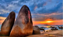 觀日巖位于蜈支洲島的東南懸崖處。站在巖上憑海臨風(fēng),俯瞰全島,遼闊的南海盡收眼底。懸崖下面,怪石嶙峋。 風(fēng)平浪靜之時,乘快艇環(huán)島游,石景千奇百怪,觀日巖像一尊天然大石佛,面向大海,日夜修煉。觀日巖又像一只巨龜緩緩爬向大海,期望回到自己的故鄉(xiāng),故又稱金龜探海。新世紀(jì)的第一縷曙光從這里升起,緋紅的太陽從海面上徐徐上升,形成一絕佳的海上觀日點。每逢風(fēng)起,激浪拍石,這一帶浪峰高高達(dá)十幾米。浪峰過后,海面上一片雪白的浪花,那才叫“卷起千堆雪”呢。