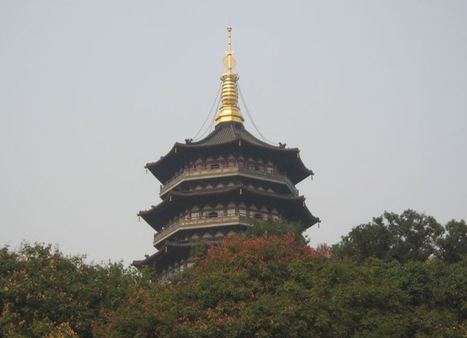 雷峰塔雖然于一九二四年突然倒塌,但它仍在西湖十景中占著響當(dāng)當(dāng)一角。宋代隱士林和靖的“夕照前村見”“和宋末元初尹廷高的”“煙光山色淡溟蒙,千尺浮圖兀倚嚓,湖上畫船歸欲盡,孤峰猶帶夕陽紅”,為它千古傳唱。