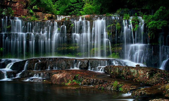 九龍瀑位于湖北省鄖縣大柳鄉(xiāng)余糧村一組到南化塘鎮(zhèn)青巖村七組之間群山之中,方圓十幾公里人跡罕至。九龍瀑分九疊傾瀉而下,一疊一潭,九疊九潭,氣勢雄壯,曲折多姿。這一著名的九龍瀑,倘在大雨之后,奔騰咆哮,聲如雷鳴,襯托在翠壁丹巖之上,宛如九條白龍,一條接一條地從天而降,景色十分壯觀。