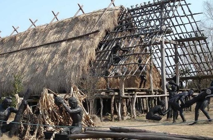 遺址現(xiàn)場(chǎng)展示,西位于博物館東南100米處占地面積2300平方米。以考古發(fā)掘場(chǎng)景復(fù)原和“干欄式”建筑重建,先民生產(chǎn)生活場(chǎng)景再現(xiàn)為文體內(nèi)容。在2800平方米考古發(fā)掘現(xiàn)場(chǎng)內(nèi)布滿(mǎn)密密麻麻的木建筑構(gòu)件和散布其間的文物,不由得讓人回想當(dāng)時(shí)土破驚天的場(chǎng)面。在復(fù)原的"干欄式"建筑內(nèi)外布置著各類(lèi)生活、生產(chǎn)場(chǎng)景,婦女們紡紗織布,男人們斫木蓋房。有的磨制骨器,有的搗谷脫殼,有的和泥制陶,有的凝神雕刻,使人仿佛回到了遠(yuǎn)古時(shí)代,親身體驗(yàn)先民創(chuàng)造燦爛文化的過(guò)程。在現(xiàn)場(chǎng)展示區(qū)還有河姆渡古生育 文化園,由著名學(xué)者費(fèi)孝通題名,向游客介紹河姆渡先民的生育理念和生育行為。