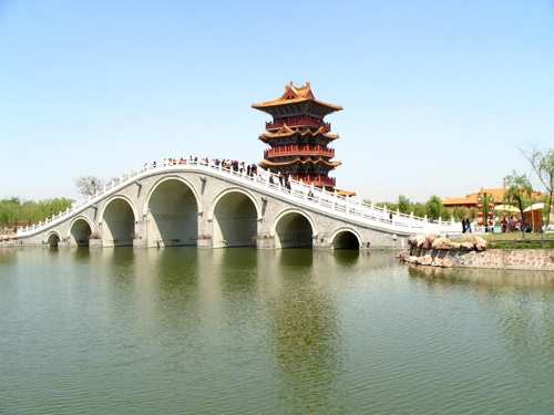 位于開封城西北部,與龍亭公園相鄰,是仿《清明上河圖》中所繪場(chǎng)景而建的一座大型文化主題公園。該園占地510畝,包括酒樓、茶肆、當(dāng)鋪以及制作汴繡、官瓷、年畫的作坊等,當(dāng)中還穿插有小雜耍、盤鼓等民間文藝表演。你還可以換穿宋裝,手持宋幣,盡情感受宋人的生活習(xí)俗,領(lǐng)略北宋的盛世繁榮。