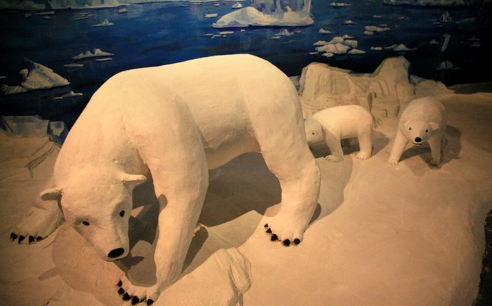 武漢東湖海洋世界企鵝館,面積共有500多平方米,分為觀展廳和飼養(yǎng)廳兩部分 。觀展廳內(nèi)用水泥和白漆等建筑材料,裝飾成冰天雪地的極地景觀,可以容納400余人,是目前國內(nèi)最大的企鵝飼養(yǎng)展館。除了惹眼的企鵝、北極熊和海象雕塑,還有一座閃爍著奇幻彩燈的愛斯基摩人冰窟。企鵝房大約有70平方米,仿照南極環(huán)境建成,分為岸上、水上兩個(gè)活動(dòng)區(qū)域。藍(lán)色的水泥“陸地”打磨得十分光滑,因?yàn)樵诖植诘牡孛嫔希簌Z的腳容易受傷。潔白的“冰川”,給人以涼爽舒適的感覺。企鵝平時(shí)在陸地上進(jìn)餐、睡覺、玩耍,玩膩了,可以一個(gè)猛子扎到水里游泳。它們的一舉一動(dòng),透過寬大的落地玻璃可以看得一清二楚。