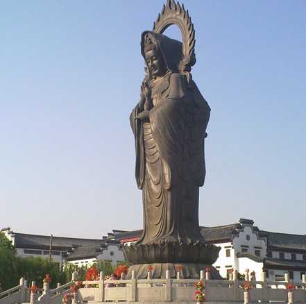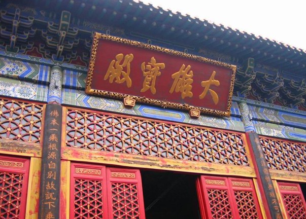 中院的主體建筑是大雄寶殿。該殿初建于清順治十八年(1661),后經(jīng)多次維修。現(xiàn)大雄寶殿是清光緒三十四年(1908)重修。大殿正中供奉著釋迦牟尼坐像,兩側(cè)為其弟子阿難和迦葉像。釋迦偏袒左肩,結(jié)跏趺坐,莊嚴(yán)靜穆。佛像后背是用樟木雕刻而成的“五龍捧圣”的圖案。佛像前還有韋馱、彌勒、地藏像。版權(quán)所有山東聊城聊之旅國際旅行社有限公司,轉(zhuǎn)載必究! 佛像后是一組海島觀音像。只見海島觀音赤足站立,左右侍立著一龍女和童子,背后是一面高達(dá)八尺的泥塑懸崖峭壁,足下碧波萬頃,怒濤洶涌。整個(gè)塑像向前傾覆。人們仰視上去,只見觀音衣袖似在飄動(dòng),正在洶涌的波濤上迎面向你走來,增加了宗教藝術(shù)的感染力。佛像前的供桌,是一件不可多得的木刻珍品。供桌高4丈8尺,橫闊1丈2尺,深寬2.5尺,前嵌垂欄,寬1.5尺,高0.6尺,其間分為五格,深畫鏤空。圖案描繪的是唐玄奘取經(jīng)回長(zhǎng)安時(shí),君民夾道歡迎的場(chǎng)面:有唐僧、孫悟空、豬八戒、沙和尚等《西游記》人物,有李世民以下文武百官、侍衛(wèi)、庶民百姓;有亭院殿墻,車馬山水,幢幡寶蓋,香爐蠟臺(tái)等一應(yīng)俱全。綜觀全圖,繁復(fù)活潑,盛況空前。垂欄下沿為五龍?jiān)撇?,周圍匝繞,以四虎腿支地,生動(dòng)有力。相傳這一樟木雕刻由十人歷時(shí)一年才完成。