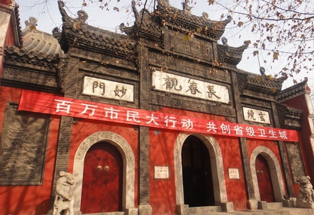 該觀建于元代,為邱處機門徒所建,以紀(jì)念道教全真派北七真之一,龍門宗的創(chuàng)始人丘處機(公元1148年-1227,字通密,號長春子)在元軍南下時“一言止殺“濟世救民之勸德。始稱“長春觀”。