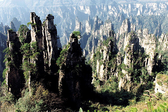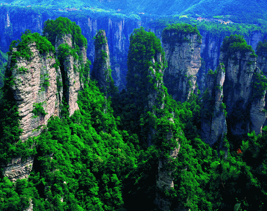 武陵源屬世界上罕見的砂巖風林地貌,整個景區(qū)內,溝壑縱橫,巖峰高聳,綠樹翠曼,獸鳥成群,有“大自然迷宮”、“天下第一奇山”這美譽。億萬年前,這里曾是一片波濤翻的海洋。歲月悠悠,滄海桑田。大自然威力無邊的“燕山運動”,將這里逐漸抬升為陸地、山脈、江河,隨后又以揮灑自如的鬼斧神工在這里“穿透切割”、“精雕細琢”,從而有了今天這般個有原始生態(tài)體系的砂巖、峰林、峽谷地貌,構成了溪水潺潺、奇峰聳立、怪石崢嶸的獨特自然景觀。