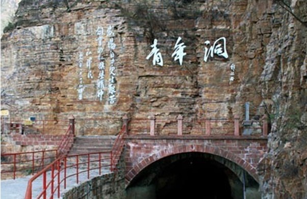 紅旗渠青年洞總長616米,高5米,寬6.2米,青年洞修筑在太行山腰的峭壁之上。它是紅旗渠水工、建筑和自然景觀結(jié)合最為精妙的地段,也是紅旗渠建設(shè)最艱巨的地段。紅旗渠青年洞是紅旗渠旅游的核心景點(diǎn),也是紅旗渠總干渠的咽喉工程之一。因參加鑿洞的突擊隊(duì)是從全縣民工中抽調(diào)出來的300名優(yōu)秀青年,故取名叫“青年洞”。