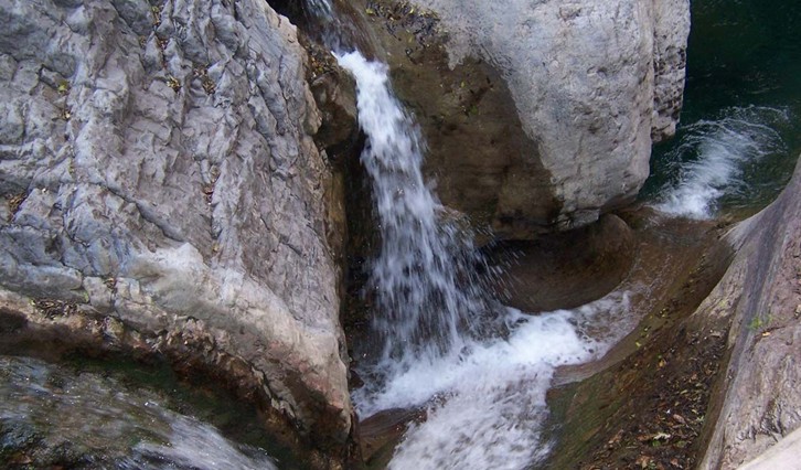 潭瀑峽地處云臺(tái)山北部略偏西,是主要河流子房河的一個(gè)源頭。溝長1270米,南北走向。溝東面,峭壁聳翠,基巖裸體。