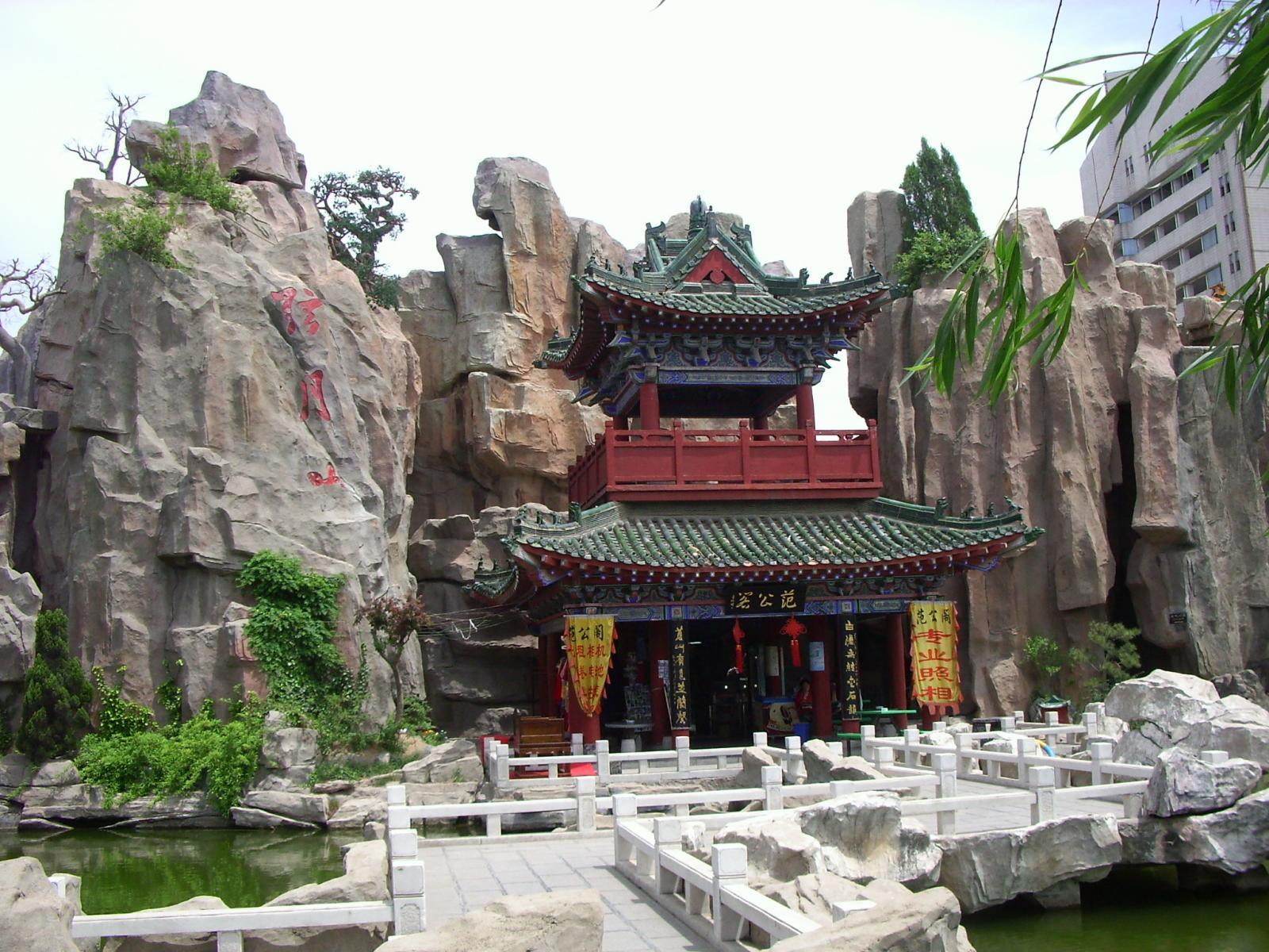 您可以漫步弦月山,享受明鏡湖。在范公閣上把酒臨風和著古琴的余音向遠處眺望。使您置身于遠古的仙境之中。