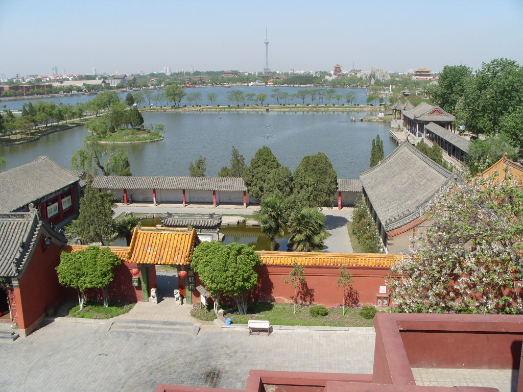 大殿是木結(jié)構(gòu),重檐歇山式建筑,很壯觀。游人登上平臺(tái),入殿觀看陳列的文物后,多在石欄前眺望開封古城景色。龍亭前有一條筆直的大道,道旁有兩個(gè)東西對峙的湖,東為潘湖,西為楊湖。傳說,東湖為宋朝“太師”潘仁美的府第,他陷害忠良,是個(gè)奸臣,宅院里的湖水是渾的;西湖為宋朝抗遼名將楊業(yè)的府第,他舍身救國,是個(gè)忠臣,宅院里的湖水是清的。這個(gè)說法沒有科學(xué)根據(jù),但反映了人們對忠奸的態(tài)度和感情?,F(xiàn)在龍亭,潘、楊兩湖,以及龍亭后面的假山花園,都辟為龍亭公園。