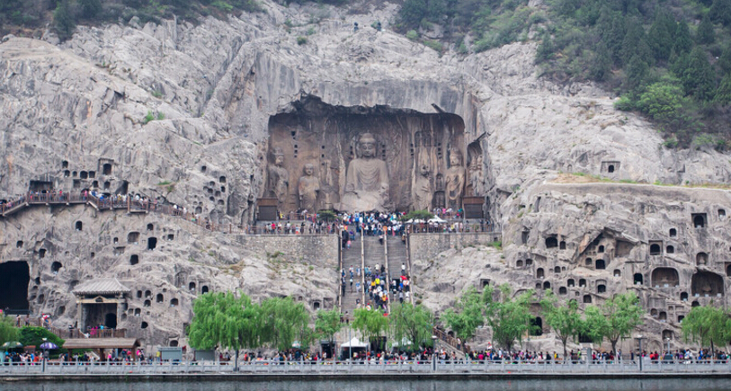 門石窟是中國石刻藝術寶庫之一,位于河南省洛陽市南郊伊河兩岸的龍門山與香山上。開鑿于北魏孝文帝遷都洛陽之際,之后歷經東魏、西魏、北齊、隋、唐、五代的營造,南北長達1公里,至今存有窟龕2345個,造像10萬余尊,碑刻題記2800余品。其中“龍門二十品”是書法魏碑精華,褚遂良所書的“伊闕佛龕之碑”則是初唐楷書藝術的典范。龍門石窟延續(xù)時間長,跨越朝代多,以大量的實物形象和文字資料從不同側面反映了中國古代政治、經濟、宗教、文化等許多領域的發(fā)展變化,對中國石窟藝術的創(chuàng)新與發(fā)展做出了重大貢獻。2000年入選世界文化遺產。