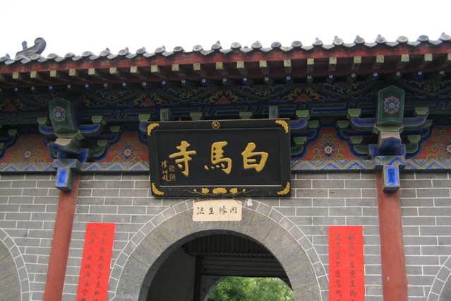 洛陽白馬寺為中國(guó)第一古剎,世界著名伽藍(lán),乃佛教傳入我國(guó)后官辦的第一座寺院,被中外佛教界譽(yù)為“釋源”、“祖庭”。白馬寺創(chuàng)建于東漢永平十一年(公元68年)。史載:東漢永平七年,漢明帝劉莊因夜夢(mèng)金人,遣使西域拜求佛法。公元六十七年,漢使及印度二高僧?dāng)z摩騰、竺法蘭以白馬馱載佛經(jīng)、佛像抵洛,漢明帝躬親迎奉。公元六十八年,漢明帝敕令在洛陽雍門外建僧院,為銘記白馬馱經(jīng)之功,故名該僧院為白馬寺。白馬寺座北面南,總面積二百余畝,其主體建筑有:天王殿、大佛殿、大雄殿[2]、接引殿、毗盧閣五層殿堂及中國(guó)第一釋迦舍利塔。白馬寺是一處保存完整、古色古香的古建筑群。1961年被國(guó)務(wù)院公布為第一批重點(diǎn)文物保護(hù)單位。1983年,被國(guó)務(wù)院確定為漢族地區(qū)佛教全國(guó)重點(diǎn)寺院。2001年1月,被國(guó)家旅游局評(píng)為首批4A景區(qū)。