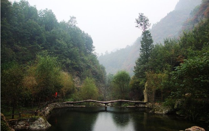 景區(qū)內溪澗密布,深潭飛瀑,星羅棋布:流泉、石潭、綠澗、飛瀑目不暇接,孱孱溪流,清澈見底,一瀉三跌,飛珠濺玉,大山因水而生動,奇石因水而靈秀。而養(yǎng)子溝之所以讓人迷戀,不僅僅因為這些千古流傳的美麗的傳說,更因為它的原始風貌和大自然的鬼斧神工。1000多米的老龍?zhí)肚?,青如綢緞的瀑布從10米高空上飛流直下,發(fā)出振耳欲聾的沖擊聲;站在明鏡崖下抬頭望去,只見眼前崖峰高入云天、巖峰綠樹倒掛,宛若“明鏡高懸”;同心樹邊,柳樹、連翹、白臘和櫻桃,四種截然不同的植物卻同生一條根、共有一個心、互為依存,看看它們,再想想到勾心斗角的煩雜人世,怎能不心生感嘆;來到會仙臺邊,蘇東坡的詞不禁涌現(xiàn)腦海:“我欲乘風歸去,又恐瓊樓玉宇,高處不勝寒。起舞弄清影,何似在人間。”