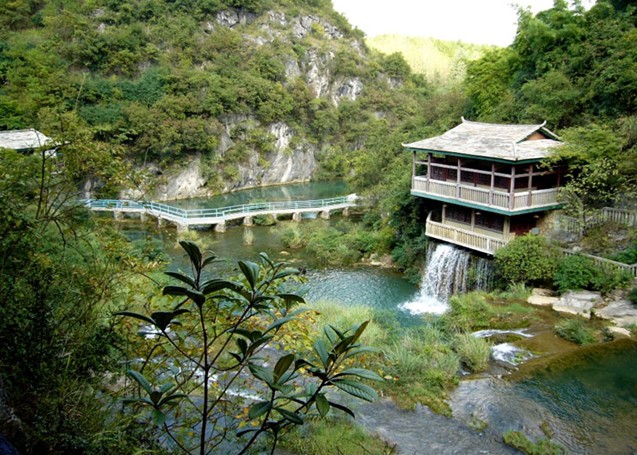 天河潭風景區(qū)位于貴陽市花溪區(qū)石板鎮(zhèn)境內(nèi),距貴陽市24公里內(nèi)兼具黃果樹瀑布之雄、龍宮之奇與花溪之秀,集飛瀑、清泉、深潭、奇石、怪洞與天生石橋于一身,渾然天成;農(nóng)舍水車,小橋流水,野趣盎然,清幽宜人。